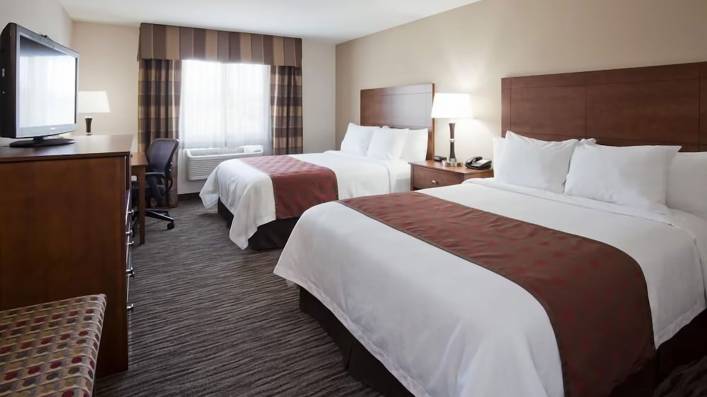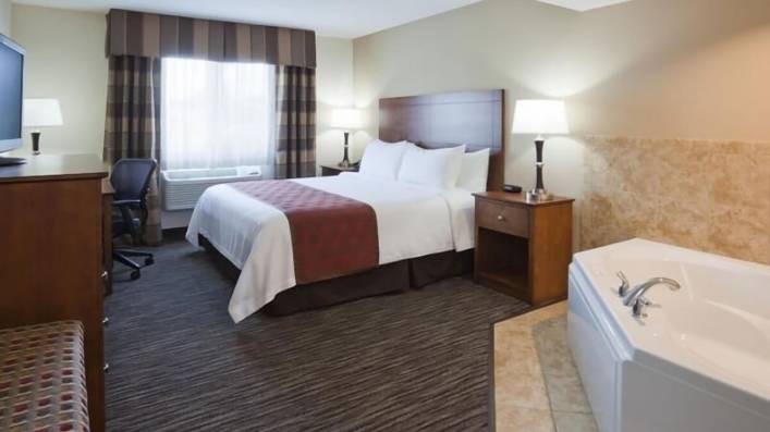 The American Inn & Suites Parkers Prairie is a two-story hotel with 33 rooms, located at 211 W Main Street in Parkers Prairie, Minnesota. The Hotel is accessible from S. Otter Avenue and maintains various common area amenities at the Property including a heated indoor pool, outdoor patio area, meeting room, and a breakfast area.