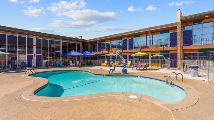 The District Hotel is a two-story Hotel that sits on 4.14 acres in Oklahoma City, positioned on Interstate 44 near Interstate 235 and Highway 74. Well-equipped with numerous common areas and guest room amenities, this limited-service Hotel maintains two outdoor pools, vending machines, an on-sight ATM, an outdoor fireplace, bar, and lounge. With 117 hotel rooms and 49 apartments, this Hotel is built to maximize both multifamily and hospitality needs.