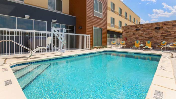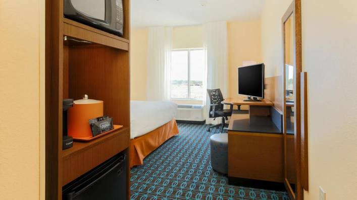 The 92-room Fairfield Inn & Suites by Marriott Cotulla is conveniently located along Interstate 35. The upper-midscale, three-story hotel features an outdoor pool, fitness center, business center, sundries shop, and picnic/barbeque area. Spacious guest rooms offer a flat-screen television, microwave, refrigerator, and separate seating area in suites.