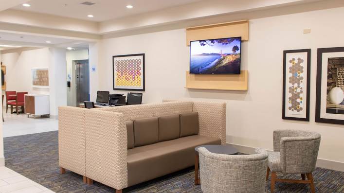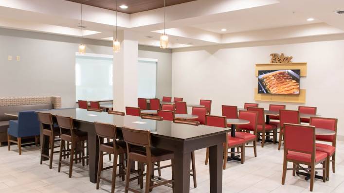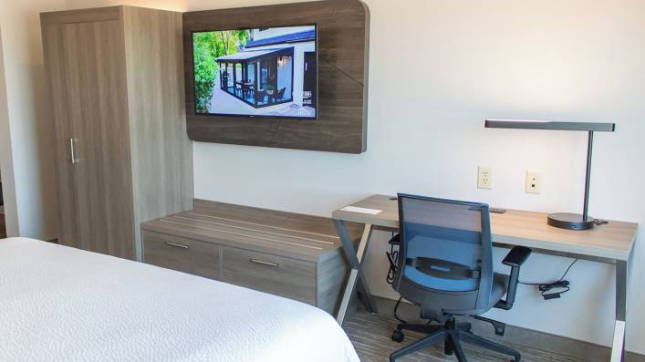 The Hotel offers a full suite of modern amenities, including an indoor pool and hot tub, fitness center, business center, suite shop, and 650 square feet of meeting space. Guest accommodations are designed for comfort and convenience, featuring flat-screen TVs, microwaves, mini-refrigerators, coffee makers, and ergonomic workstations. In 2025, the property underwent a major voluntary furniture, fixtures, and equipment (FFE) renovation, including new guest room case goods, lighting, vanity mirrors, artwork, countertops, and sinks in bathrooms, closets, and wet bars, as well as new porcelain tile in public spaces.