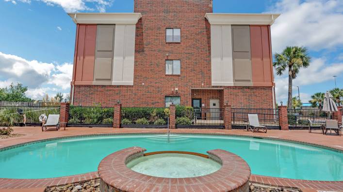 The Holiday Inn Express & Suites Winnie is a three-story hotel with 66 rooms, located at 46300 Interstate 10 in Winnie, Texas. The Hotel is easily accessible and highly visible just off Interstate 10. Various common area amenities at the Property include a seasonal outdoor pool, meeting room, breakfast area, fitness center, laundry