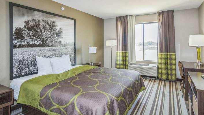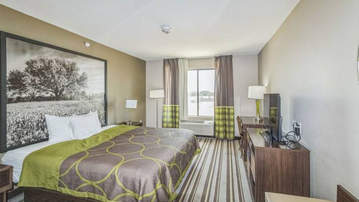 The Super 8 by Wyndham Stanton is a three-story hotel with 50 rooms, located at 3432 Interstate 20 in Stanton, Texas. The Hotel is easily accessible and highly visible just off Interstate 20. Shared common area amenities at the Property include a fitness center, breakfast area, and business center.
